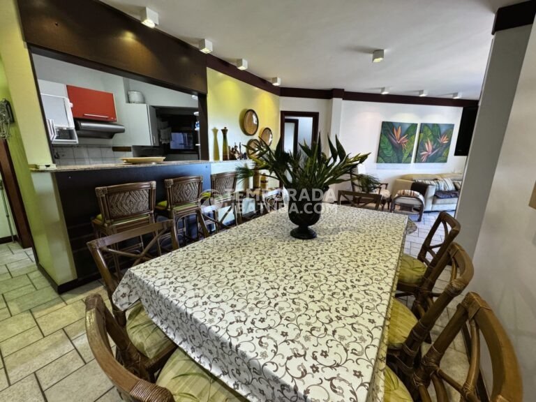 São 3 dormitórios com ar condicionado, sendo 1 suíte + 1 banheiro social. Sendo ao total 2 banheiros A sala possui dois ambientes sendo de jantar e estar com tv, e a cozinha é toda equipada com utensílios para preparar suas refeições.