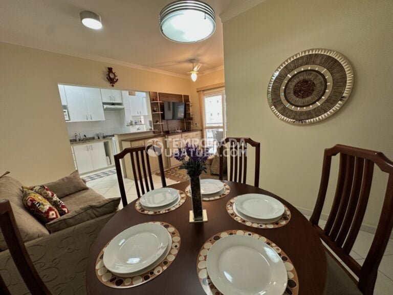 A sala possui dois ambientes sendo de jantar e estar com tv, e a cozinha é toda equipada com utensílios para preparar suas refeições.