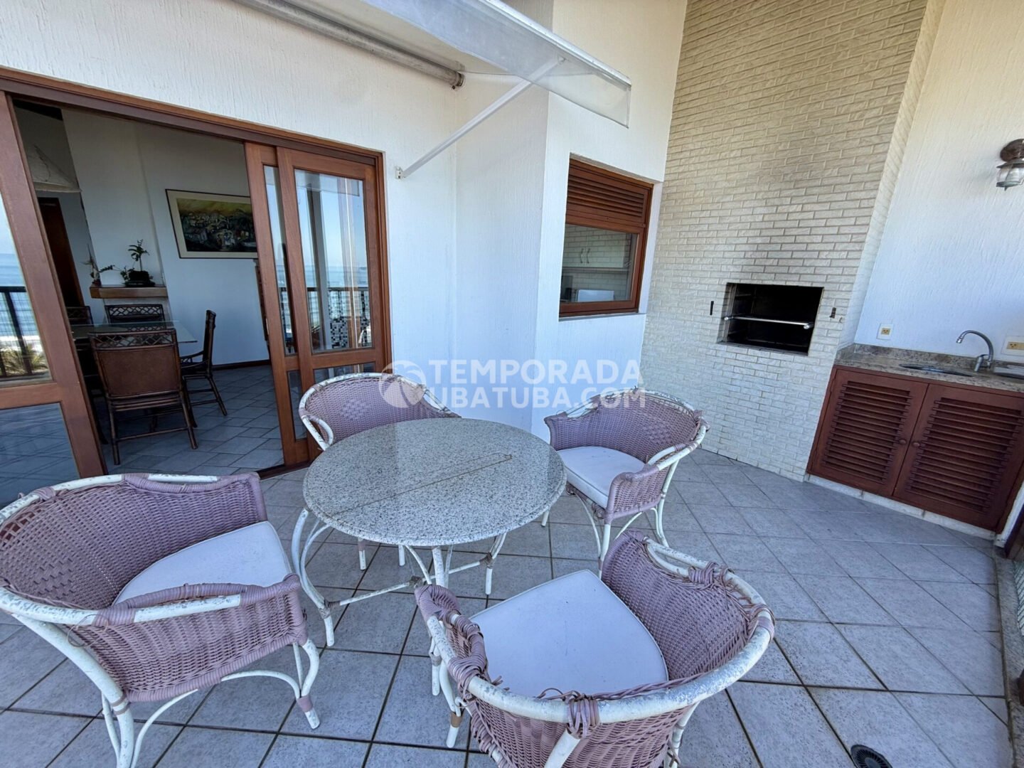 Terraço gourmet super espaçoso com uma vista incrivel para a orla da praia. A area de churrasqueira equipada com mesa disponivel e utensilios para preparar o melhor churrasco para voce e sua familia